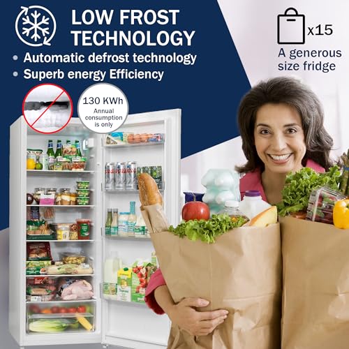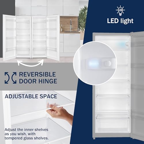 Details: Stock up on all your chilled favourites with this larder fridge from English Electric Its 242 litre capacity lets you store everything from that trusty carton of milk for those afternoon brews, to a selection of burgers and sausages for the weekend BBQ. And because it’s an auto defrost model; you won’t need to waste your weekends chipping away at ice either. The handy LED light inside is great for late-night snacking too, illuminating everything inside so you’ll have no problem rooting right at the back for that leftover block of cheese. If you’re a little short on space in your kitchen, the door can be adjusted and open from either the left or right too for a perfect fit every time. Complete with 2 years UK manufacturers parts and labour guarantee.